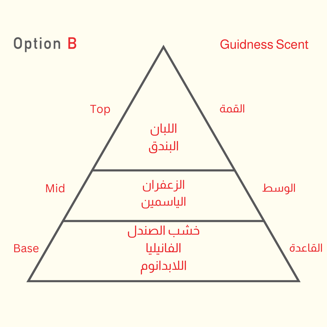 عطر جايدنس سنت يمثل تناغمًا ساحرًا من الفخامة والتراث. يبدأ العطر بنوتات عليا مشرقة من الزعفران والهيل، بينما يعزز قلب العطر عبير الورد الدمشقي والخزامى التي تمنحه عمقًا وأناقة فاخرة. القاعدة مزيج من العود النقي وخشب الغاياك، مما يجعل العطر يدوم طويلًا ويضفي إحساسًا بالقوة والرقي. متوفر بحجم 5 ملي.