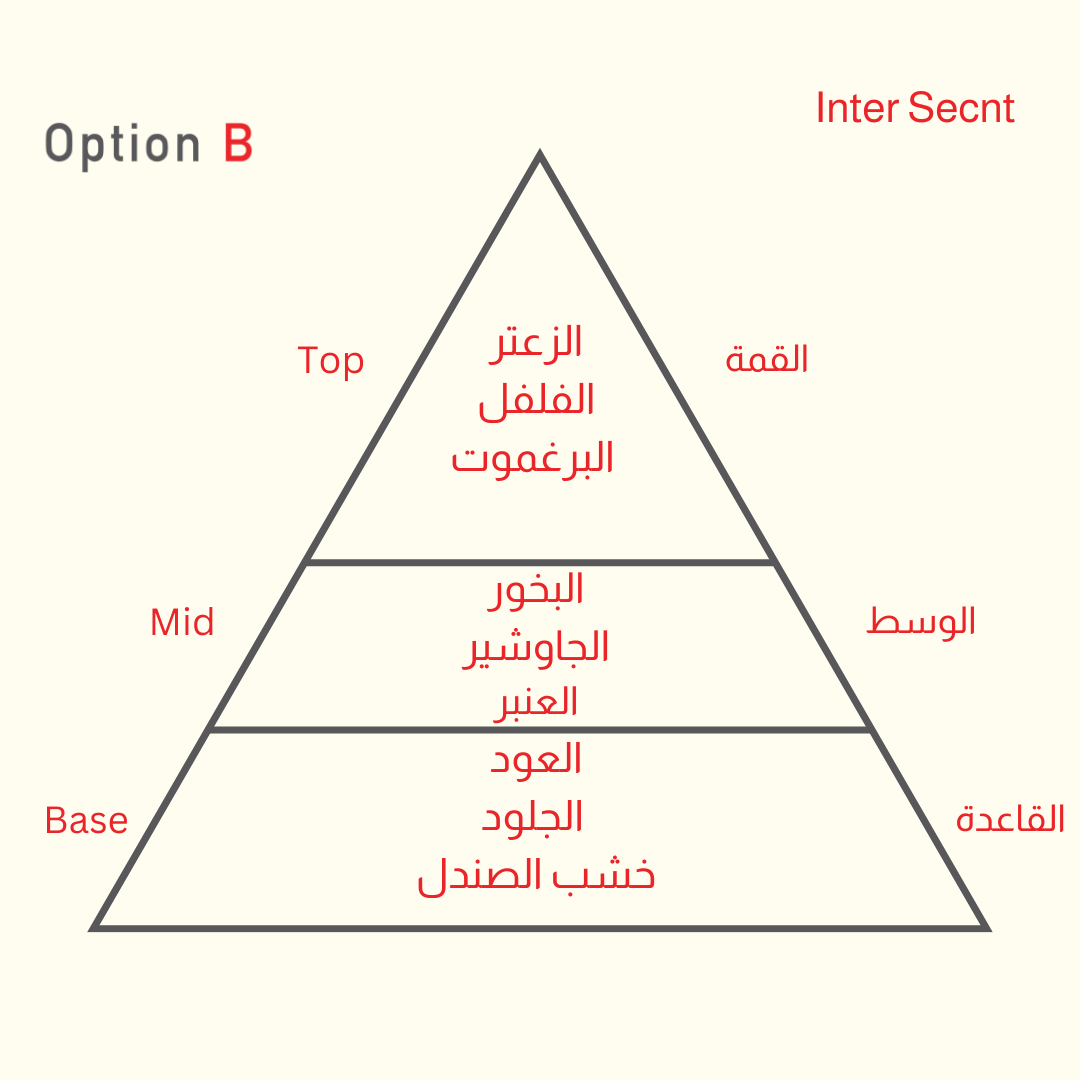 يشعرك هذا المزيج الدقيق والدافئ والعميق بالأناقة والتفرد. يفتتح العطر بمقدمة من زيت الفلفل الحلو والبرغموت والزعتر البري (الأريغانو). ويتألف قلب العطر من التوابل التقليدية، بما في ذلك اللبان والجاوشير والمر والروائح العطرية ، إلى جانب النفحات الحلوة والدافئة للعنبر واللاذن (القريضة). بينما تتكون قاعدة العطر من خشب الصندل ودخان العود والجلد والبتشولي مما يخلق عبيرًا يدوم ويمنح الكولون المزيد من العمق. يجعل مزيج العطور القوية الشرق أوسطية العطر طويل الأمد وشديدًا، ولذلك فهو مثالي ك عطر للمناسبات الخاصة وياتي العطر بحجم العطر 50 ملي.